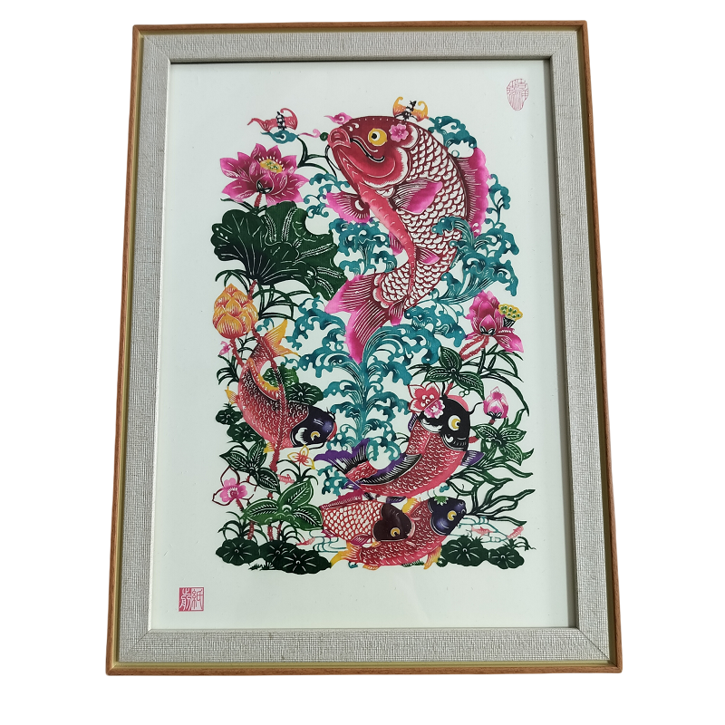 Big carp lotus Colorful paper-cut picture